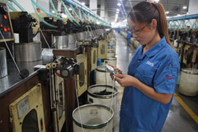 她,來(lái)自江西,窄窄的臉龐,一頭中長(zhǎng)的短發(fā),臉上有一些淺淺的雀斑,鼻梁上架著一副近光眼鏡,給人一種文靜中帶著干練的感覺(jué)。她就是尼龍成型的品管員——海青順。